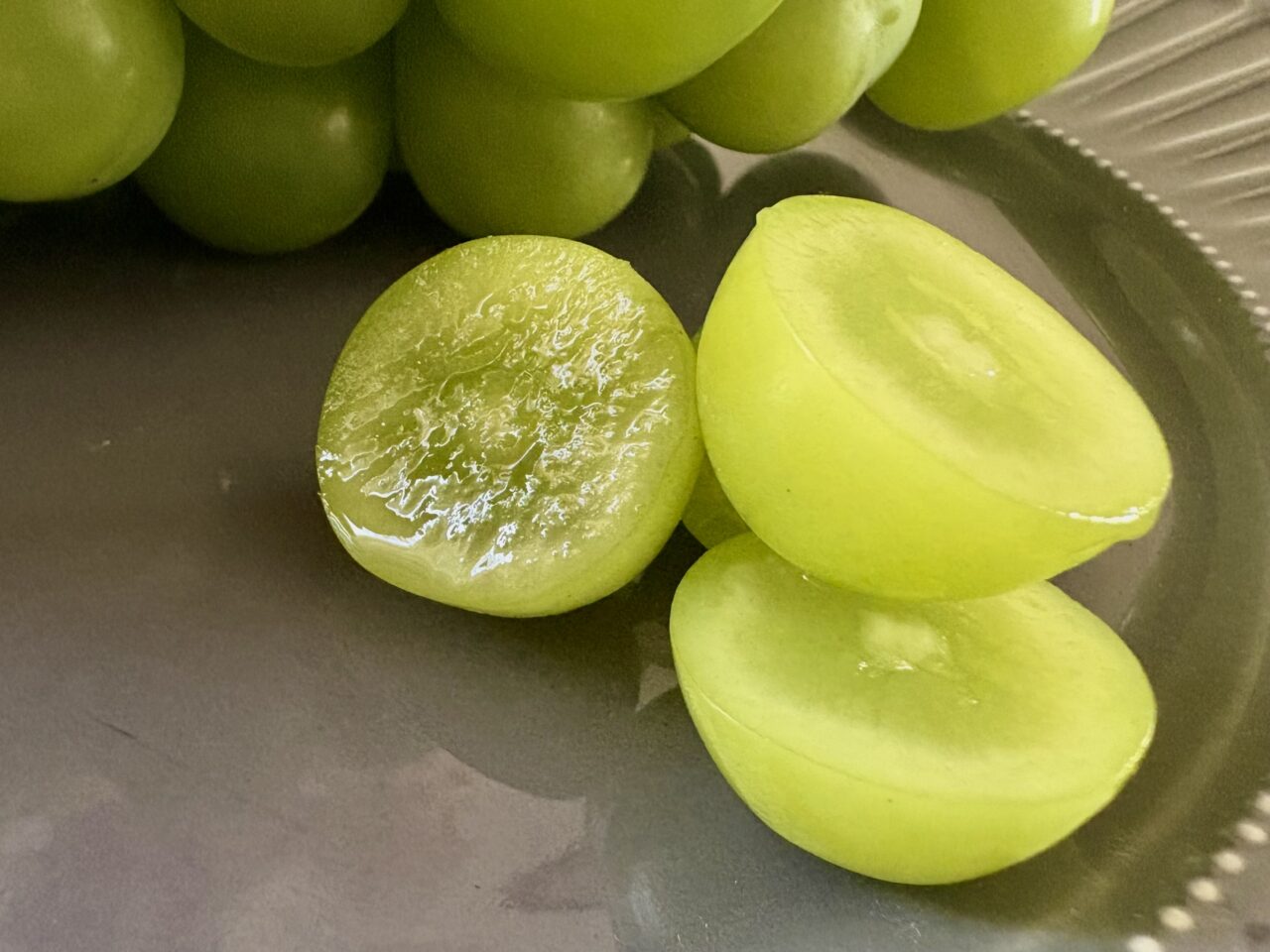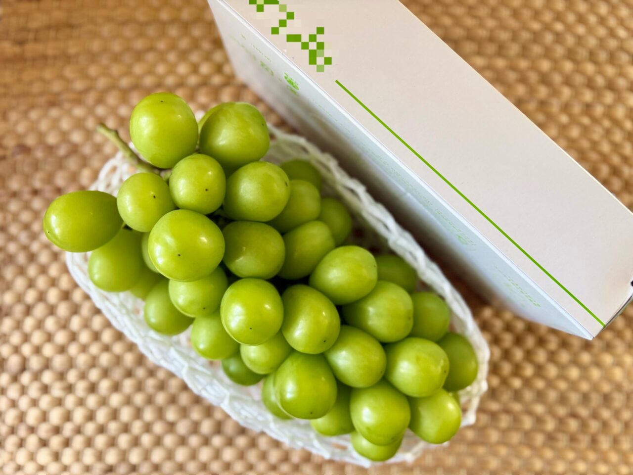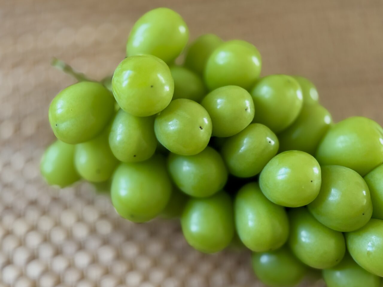 一粒一粒が大きく張りがあり、口に運ぶと、皮ごと食べられるパリッとした食感とともに、甘い果汁が溢れ出し口いっぱいに広がります。旬を迎えたシャインマスカットは、贈り物としても喜ばれる高級フルーツ。もちろん自分へのご褒美にもぴったりです。