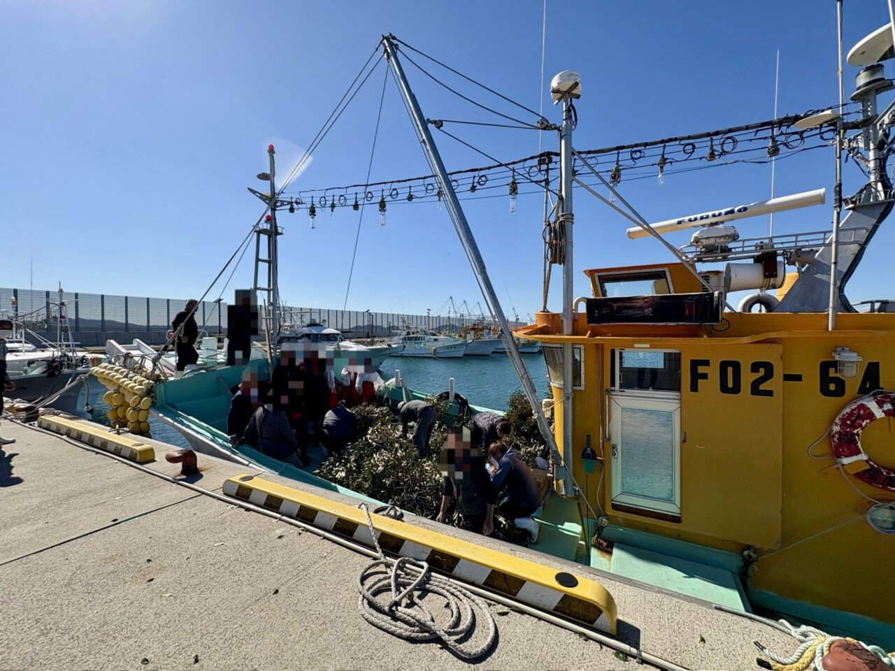 放流を終えたのち、関係者と宗像大社の巫女たちが船に乗り込み、竹魚礁を鐘崎漁港沖に沈めます。豊かな自然と祈りのつながりを感じる、あたたかくも荘厳な行事でした。