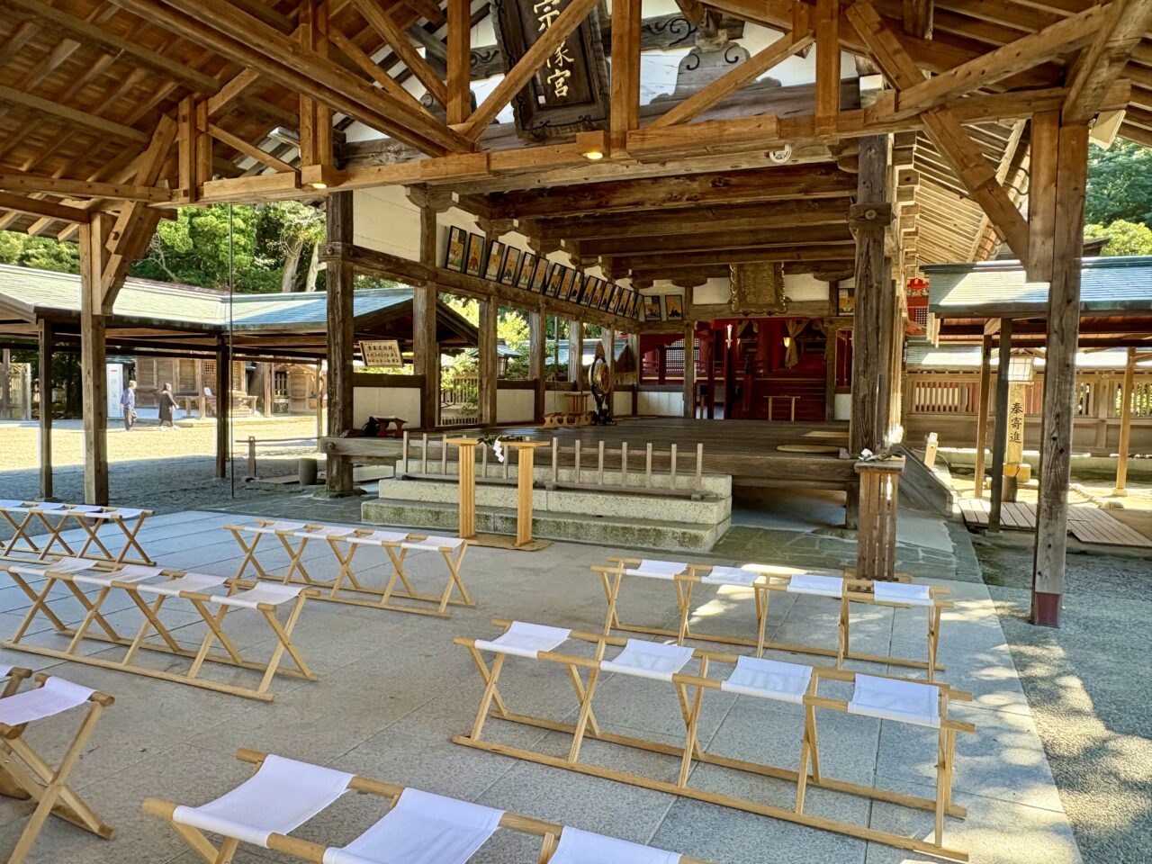 まずは、宗像大社辺津宮で『豊饒祭』の神事が執り行われ、その後、鐘崎漁港へと移動します。