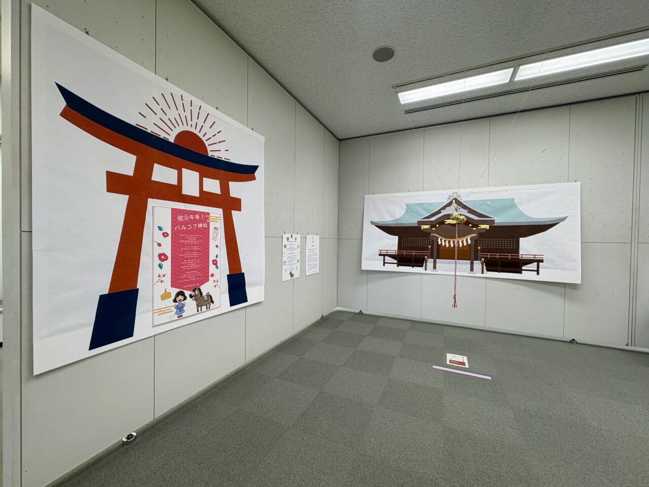また、2026年の干支が「午」ということもあり、歴史資料館前のギャラリーでは、古賀市の国指定史跡「船原古墳」のPR公式キャラクター、馬の「バルコフ」にちなんだ、手作りの『バルコフ神社』が、2026年1月18日(日)まで設置されています。