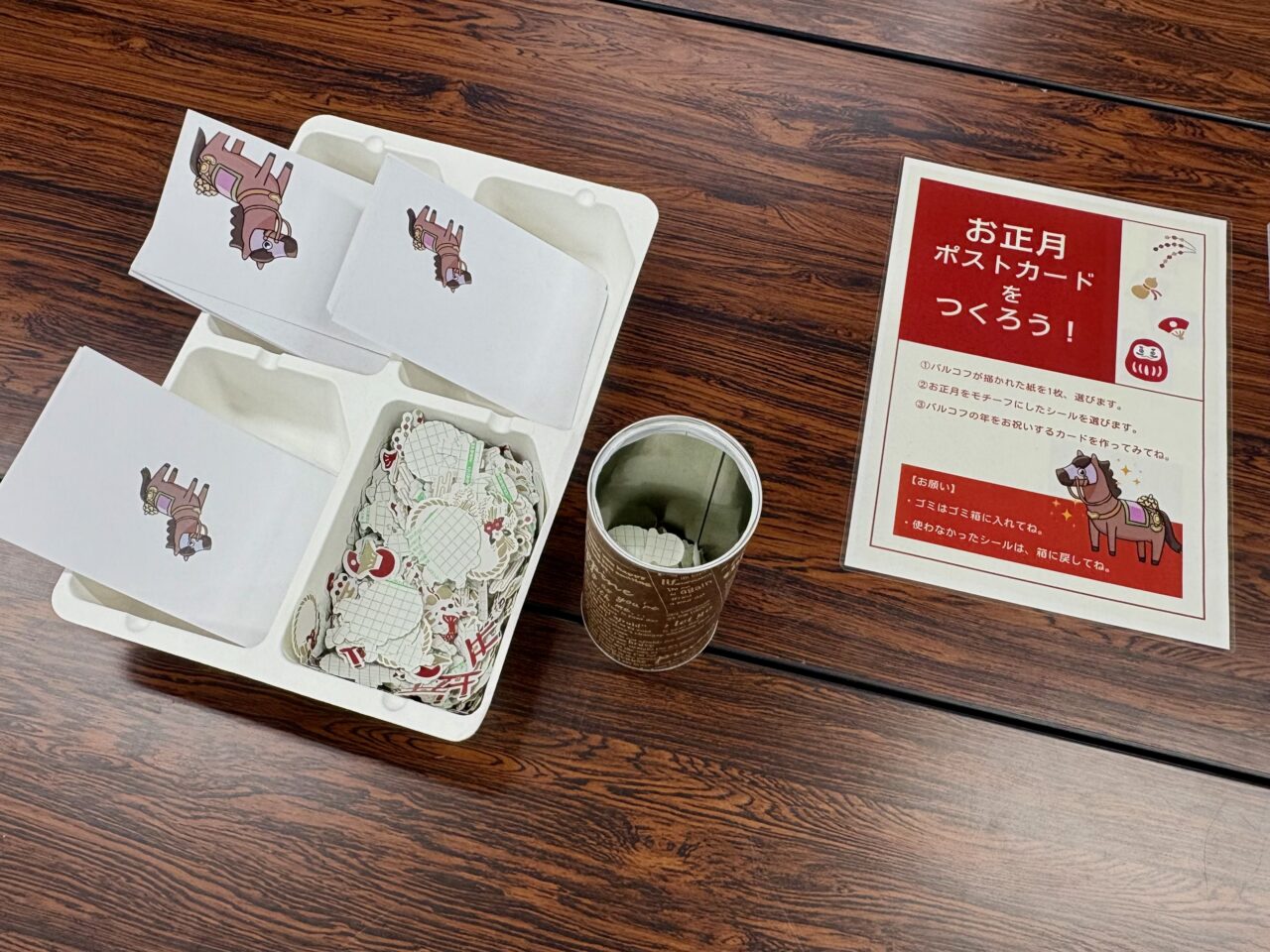 参拝を楽しむのはもちろん、「バルコフ」が描かれたポストカードにシールを貼って、自分だけのオリジナルポストカードを作るコーナーも設けられていましたよ。
