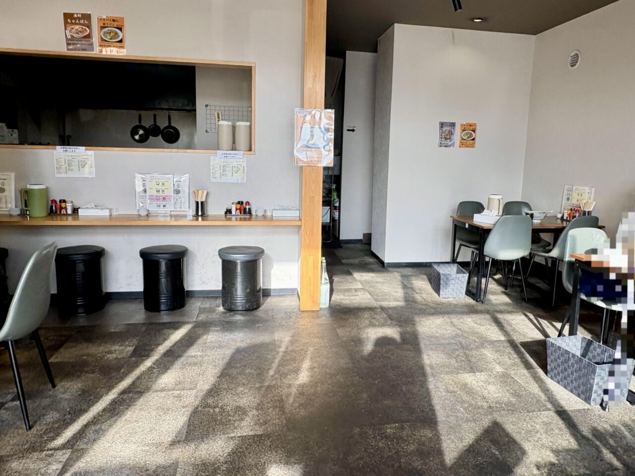 清潔感のある店内には、4人掛けのテーブル席が5卓、カウンター席が5席あり、おひとり様から家族連れまで利用しやすい雰囲気となっています。