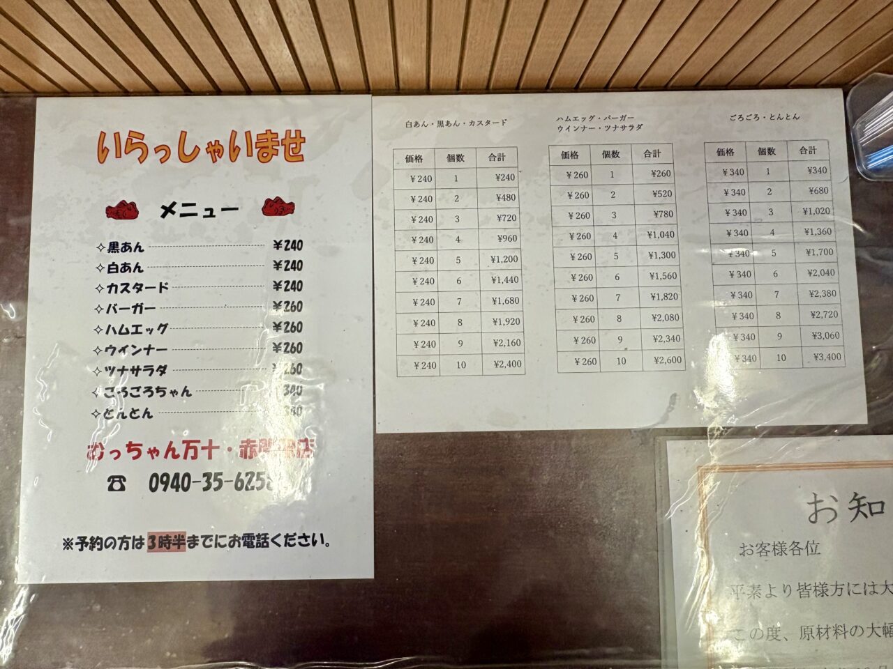 気になるメニューは、白あん、黒あん、カスタードといったスイーツ系から、ハンバーグが入ったものやウインナー、ツナサラダなどのお惣菜系まで豊富にそろっています。なかでも一番人気なのが「ハムエッグ」です。