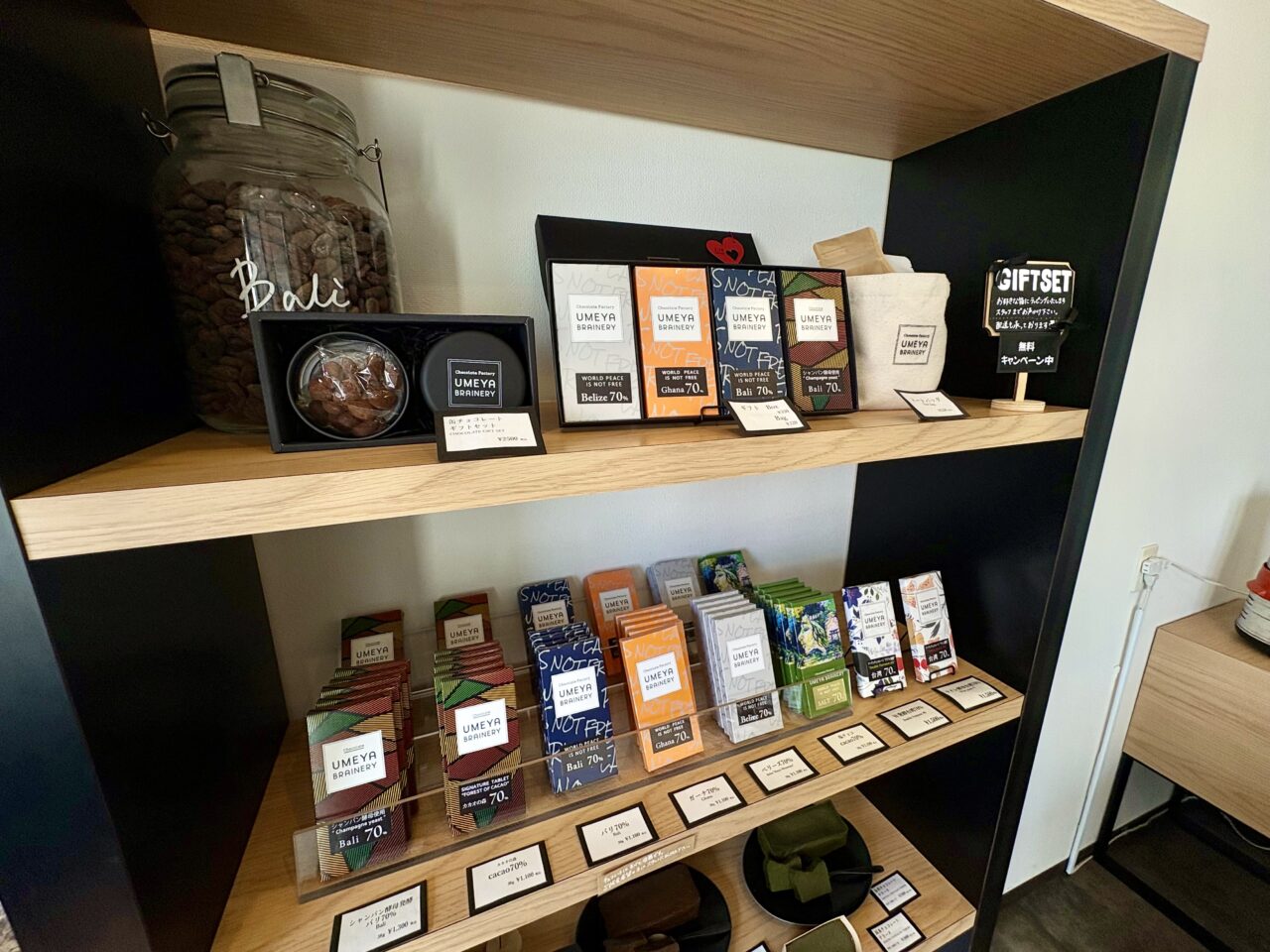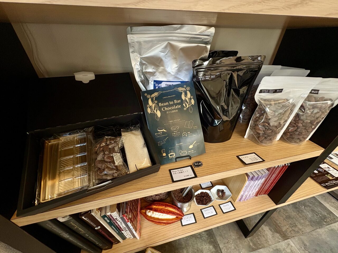 Bean to Barの手作りキットやカカオ豆、チョコレートに関する書籍も販売されており、チョコ好きにはたまらない空間になっています。