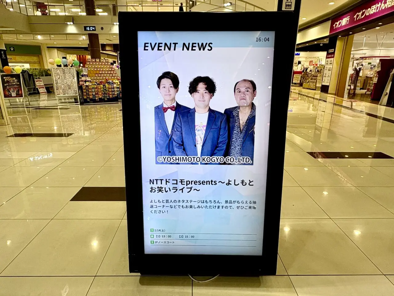 福津市日蒔野にある「イオンモール福津」で、2026年2月14日(土)に人気芸人が登場する注目イベント『NTTドコモpresents~よしもとお笑いライブ~』が開催されます。
