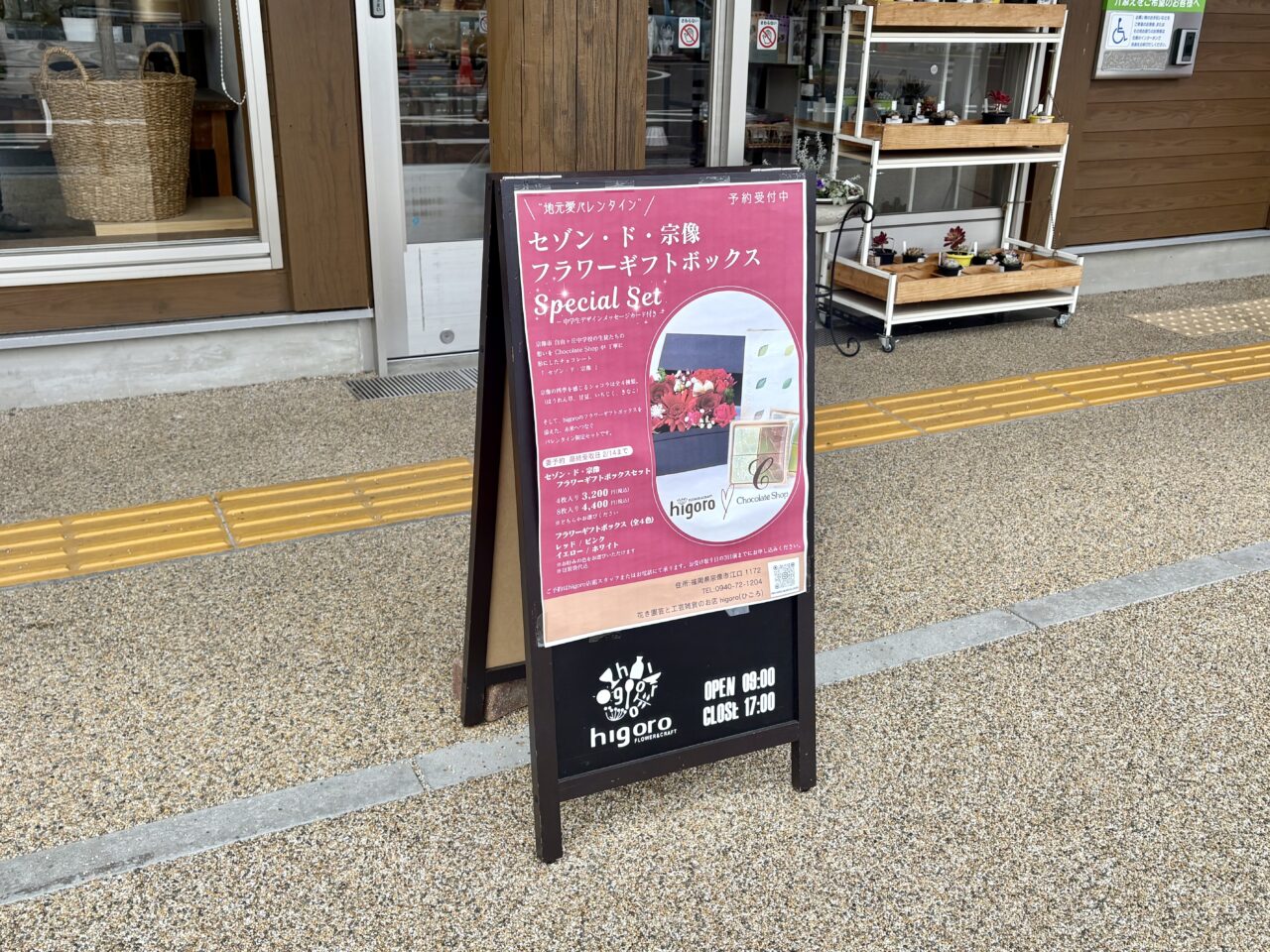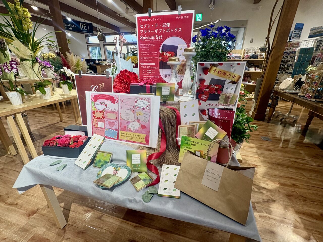 また、道の駅むなかた内の「Higoro」では、このショコラを使ったバレンタイン企画も登場。「セゾン・ド・宗像」とBOXフラワーがセットになった特別ギフトの予約受付をされています。