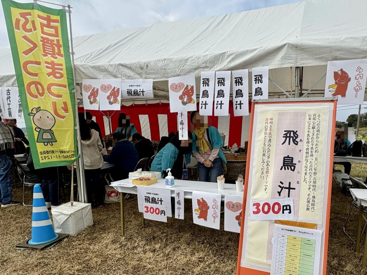 気になっていた、まつり名物の「飛鳥汁」ですが、筆者が訪れた時は準備中で残念ながら味わうことはできませんでしたが、会場に出ていた案内によると「味噌と牛乳で煮込んだコクのある鶏スープ」とのこと。どんな味わいなのか、次回の楽しみとして期待が膨らみます。