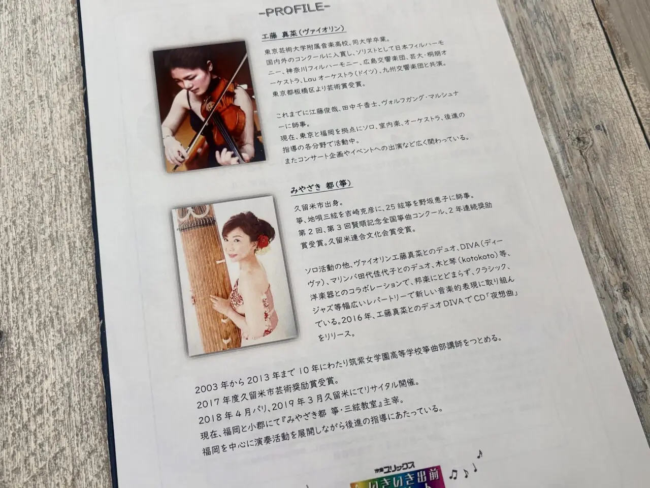 今回は、東京と福岡を拠点に活動するヴァイオリニストの工藤真菜さんと、久留米市出身の箏奏者のみやざき都さんによるデュオ「DIVA(ディーバ)」を迎えます。和と洋の楽器が織りなす美しいアンサンブルは、聴く人の心を優しく包み込みます。