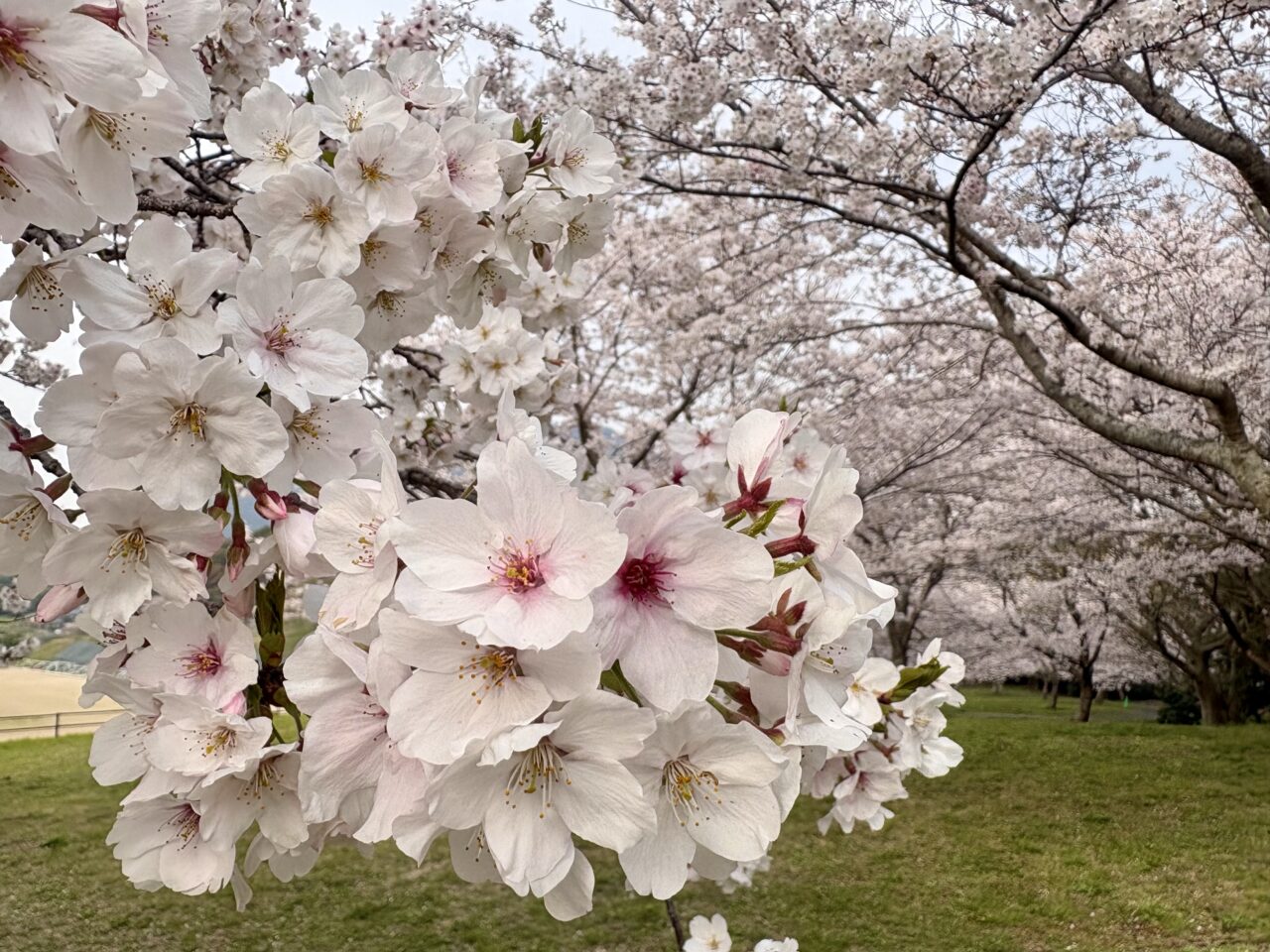 【宗像市】山田にある「ふれあいの森総合公園」の桜景色。映えるフォトスポットの「見晴らしの丘」は絶景。