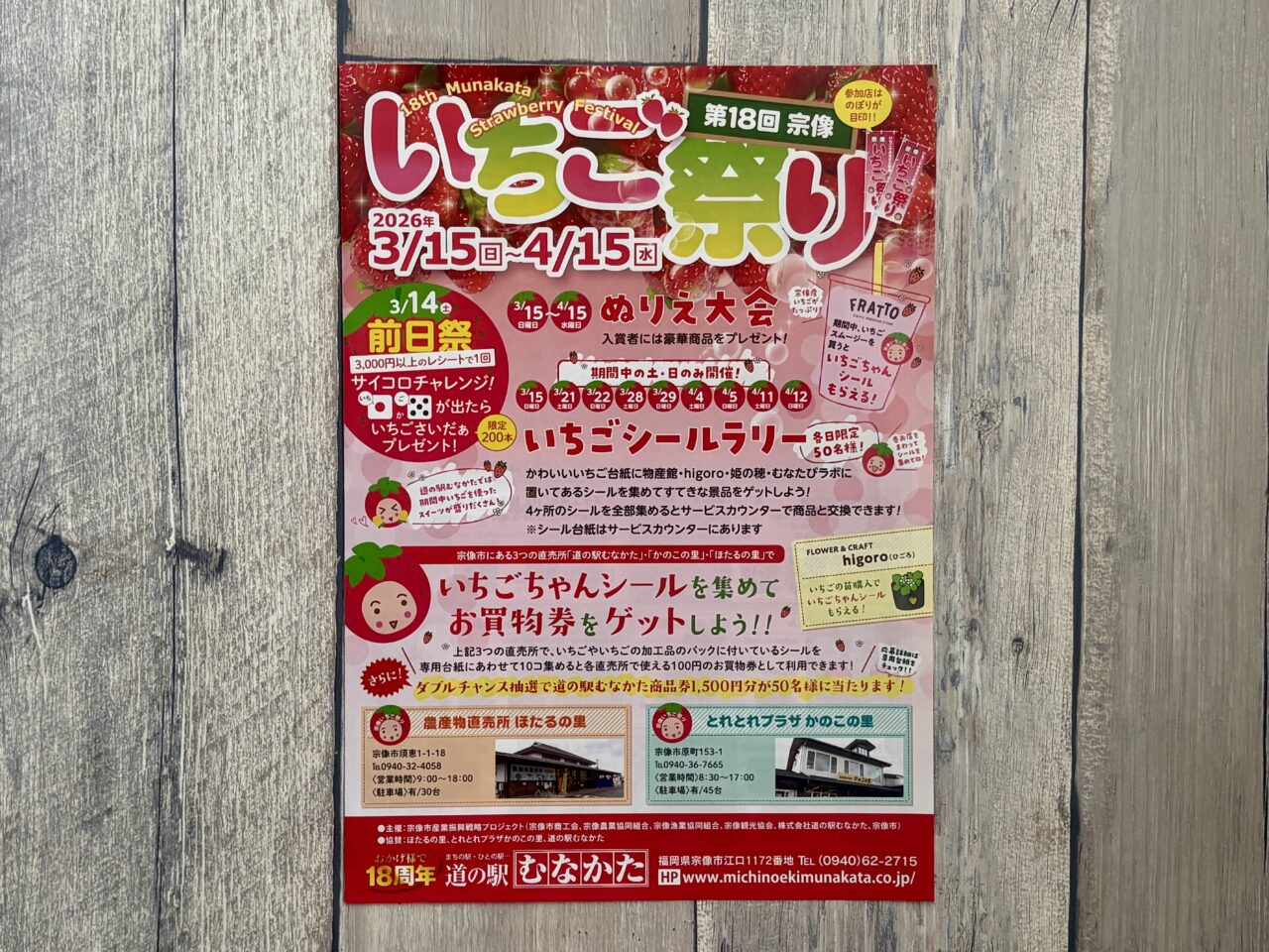 2026年3月15日(日)からスタートしている『第18回 宗像いちご祭り』が、4月15日(水)まで開催されています。