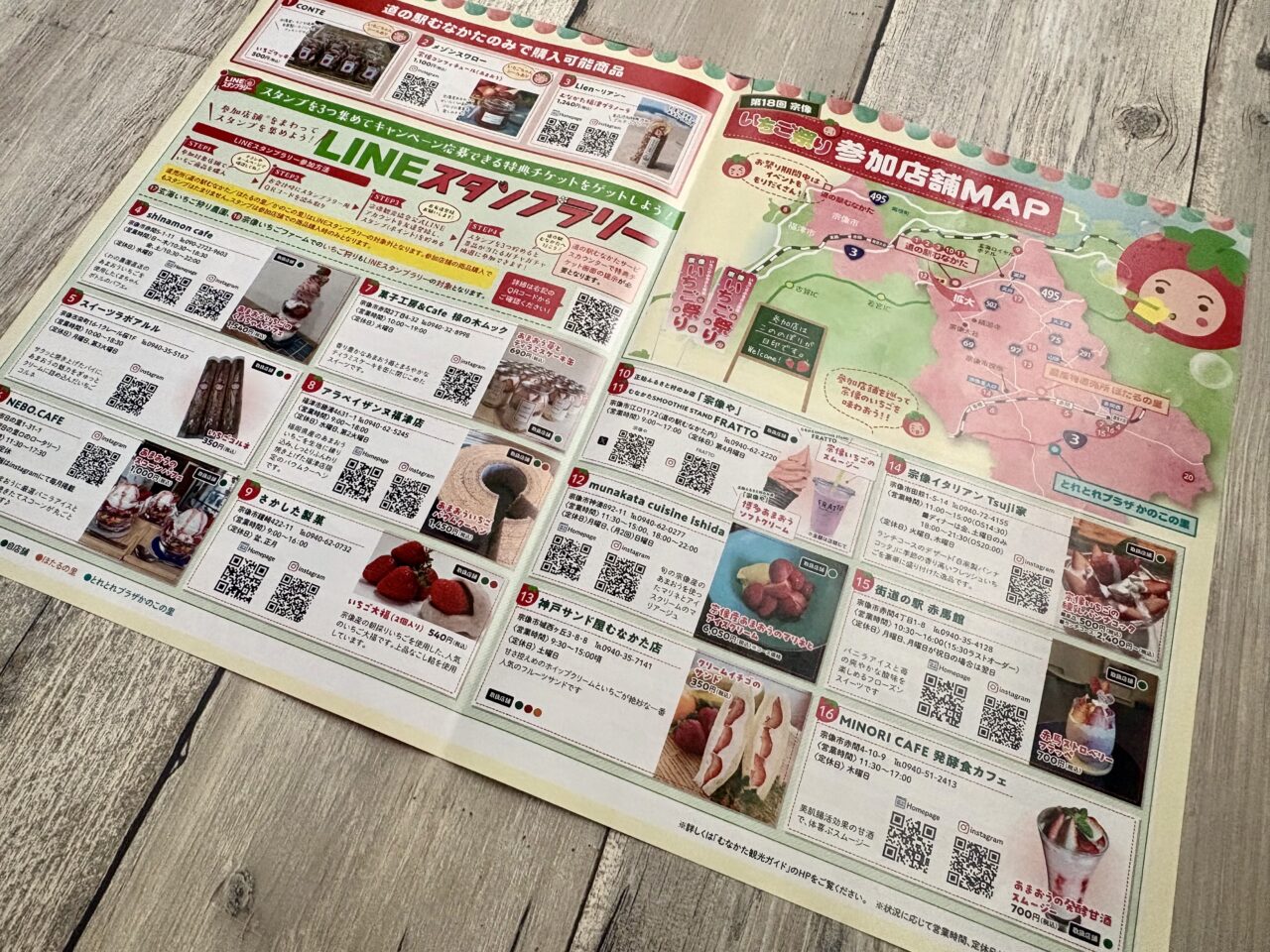 さらに、宗像市・福津市内のスイーツ店やいちご狩り農園など全18店舗が参加する「LINEスタンプラリー」も同時開催中。対象店舗を巡ってスタンプを3つ集めると、「道の駅むなかた」のサービスカウンターでガチャガチャ抽選に参加できるなど、地域全体で楽しめるイベントとなっています。