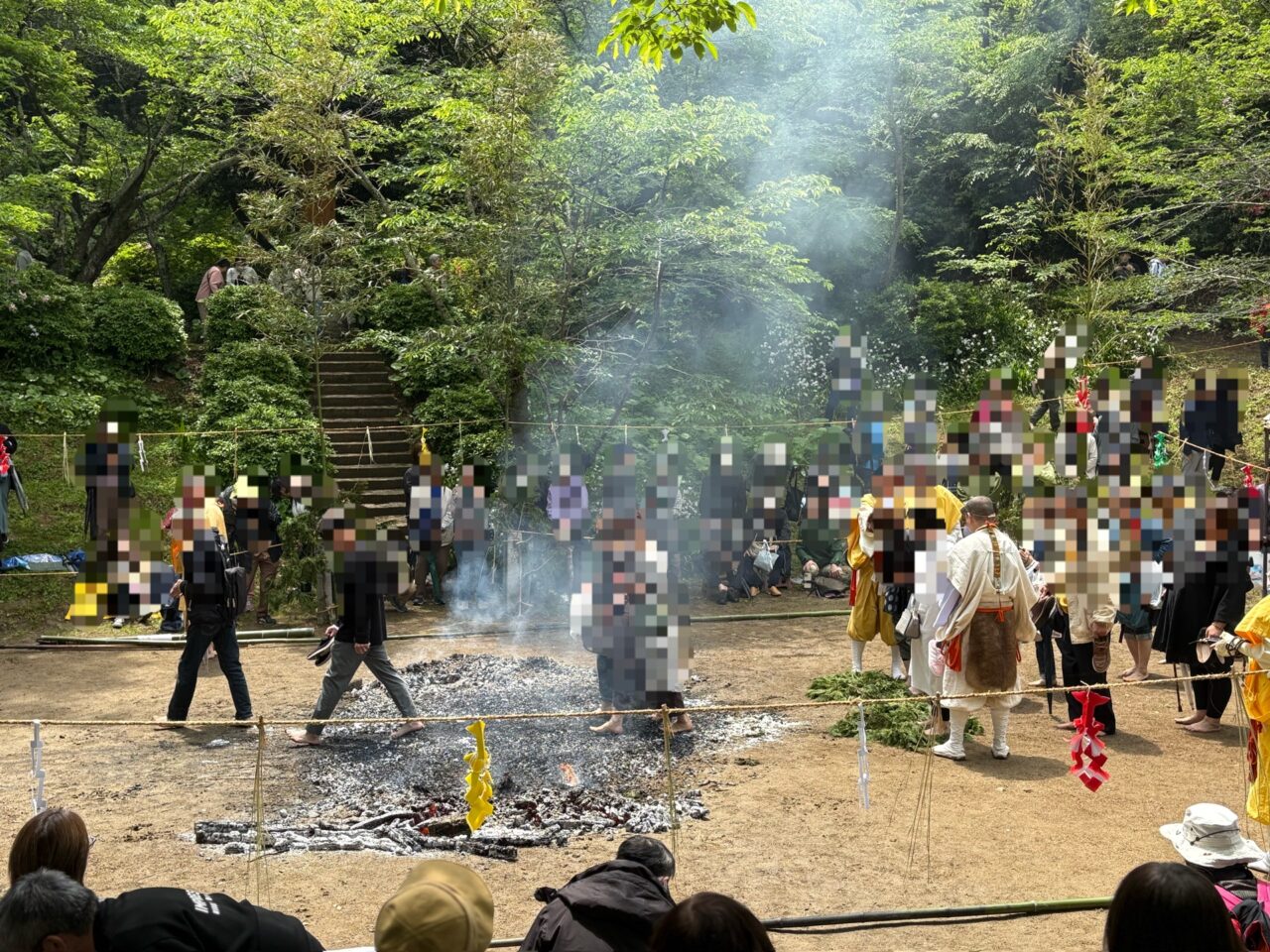 炎が落ち着いた後には、“火渡り”の行が行われます。白煙の立ち上る炭の上を修験者たちが素足で渡る荒行であり、その様子は大変見応えがあります。また、一般の参拝者も参加することができ、無病息災を願いながら火渡りを体験できる貴重な機会となっています。